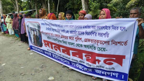 বুধবার (১ অক্টোবর) সকাল ১১ টায় উপজেলার কবাই ইউনিয়নের উত্তর কবাই গ্রামে এ মানববন্ধন অনুষ্ঠিত হয়। মানববন্ধনে বক্তব্য রাখেন হাসিনা বেগম, ফাতেমা আক্তার, ফারজানা বেগম, রেবা বেগম প্রমূখ। মানববন্ধনে বক্তারা বলেন, গত ২৮ সেপ্টেম্বর দিবাগত রাত সাড়ে ১২টার সময় বিএনপি নেতা শাহিন হাওলাদার ও শওকত খানের বাড়ীতে ডাকাতি সংগঠিত হয়।