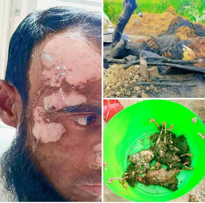 এতে করে তার গোয়াল ঘরে থাকা একটি গরু দুই টি নাড়াপাড়া সহ উক্ত ঘরে থাকা অনেকগুলো হাঁস-মুরগি পুরে ভস্ম হয়ে যায়।