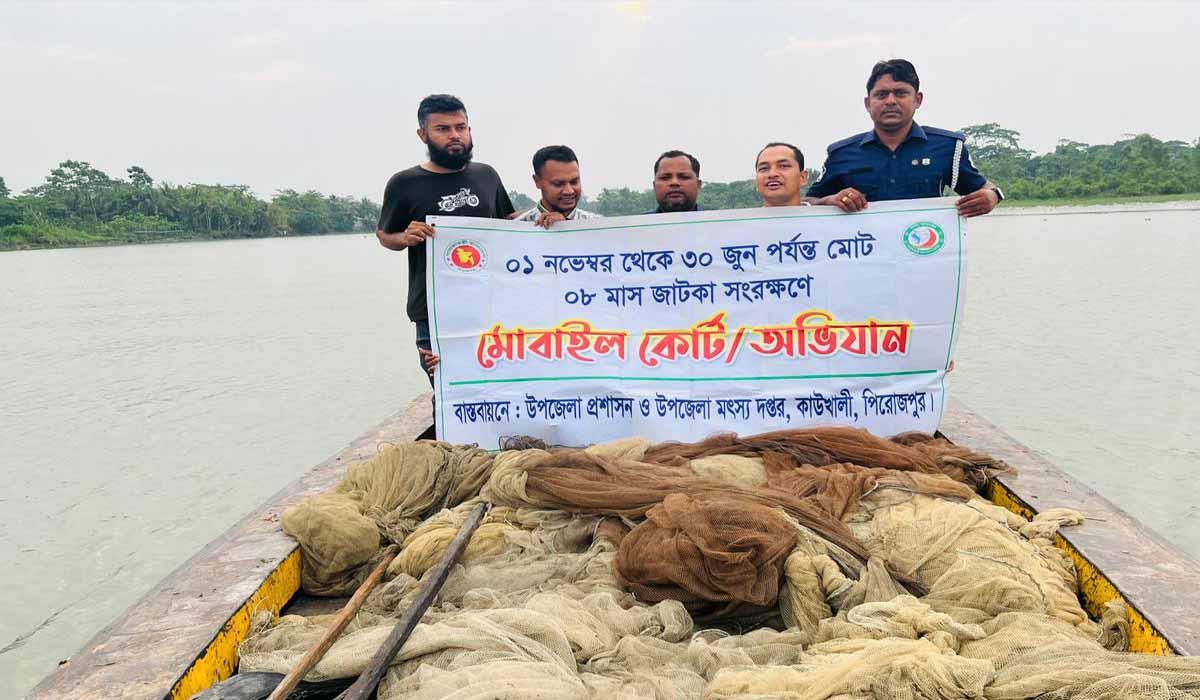 কাউখালীতে প্রশাসনের অভিযানে বিপুল পরিমাণ অবৈধ জাল জব্দ