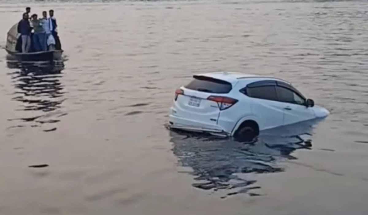 গাড়ির চালক জাকির হোসেন বলেন, গাড়ির ব্রেকের সমস্যার কারণে ফেরিতে উঠতে গিয়ে নিয়ন্ত্রণ হারিয়ে নিচে পড়ে যাই।
