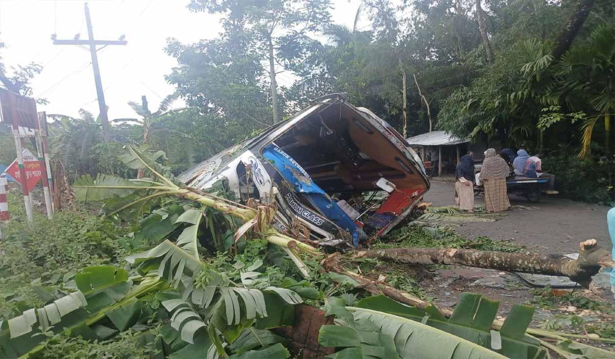 নলছিটিতে নিয়ন্ত্রণ হারিয়ে যাত্রীবাহী বাস খাদে, আহত ১০